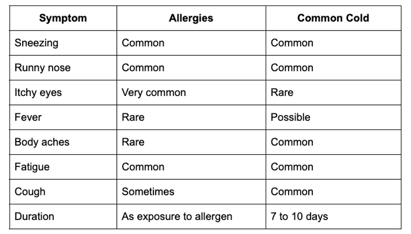 There is a significant overlap in allergy symptoms vs. cold symptoms, which is why confusion is common.